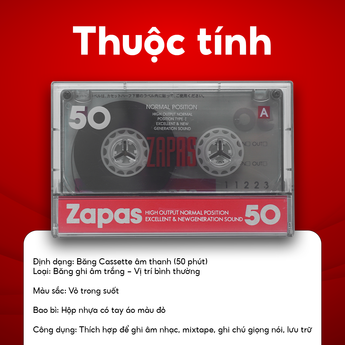 Băng Cassette Trắng Zapas, Vỏ Đỏ Hộp 30 Băng Cassette, Băng Nhạc 50 Phút, Copy Nhạc Theo Yêu Cầu