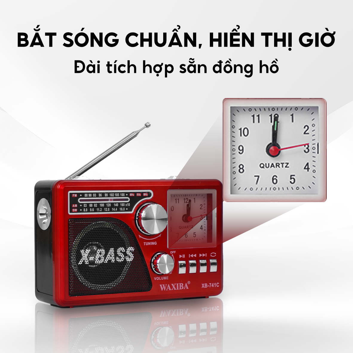 Đài Radio 741URT Xuất Xứ INDONESIA kèm tiện ích đồng hồ, nghe đài nét căng, âm thanh chân thực, sống động