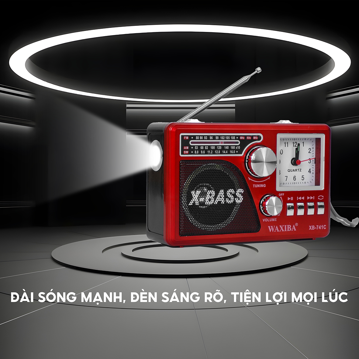 - Đài radio Waxiba XB-741C là một thiết bị đa chức năng với khả năng nghe nhạc qua MP3, thẻ nhớ, và USB, đồng thời bắt sóng tất cả các kênh AM/FM/SW.
