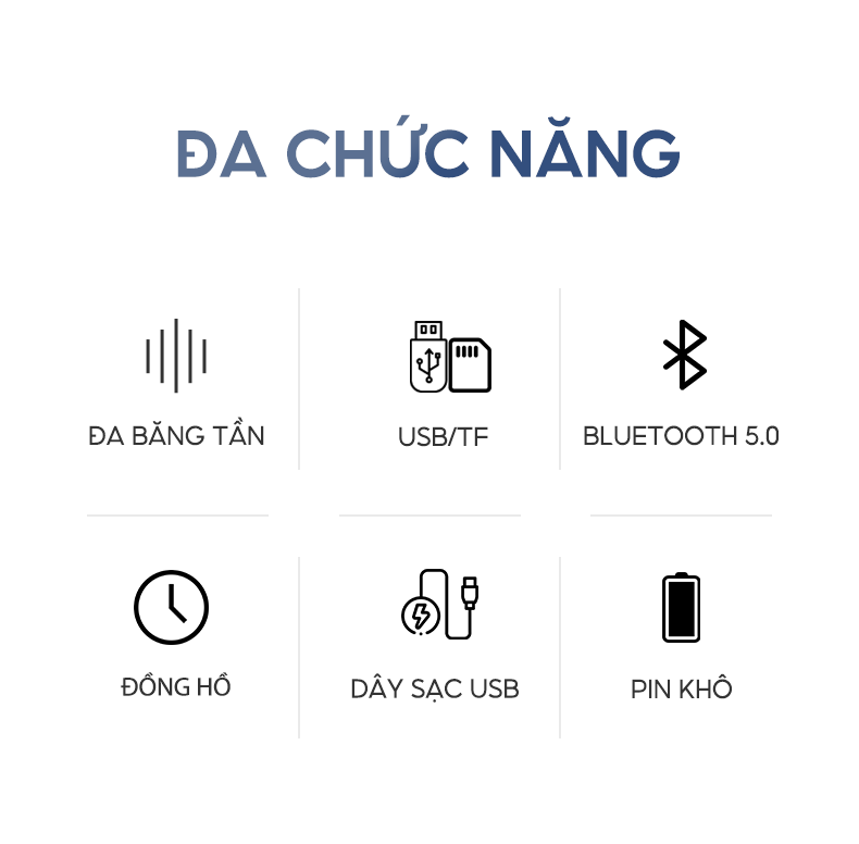 𝑪𝒉𝒖̛́𝒄 𝒏𝒂̆𝒏𝒈: Nghe đài FM, sử dụng thẻ nhớ, USB, kết nối loa cho điện thoại, laptop, máy tính, MP3...