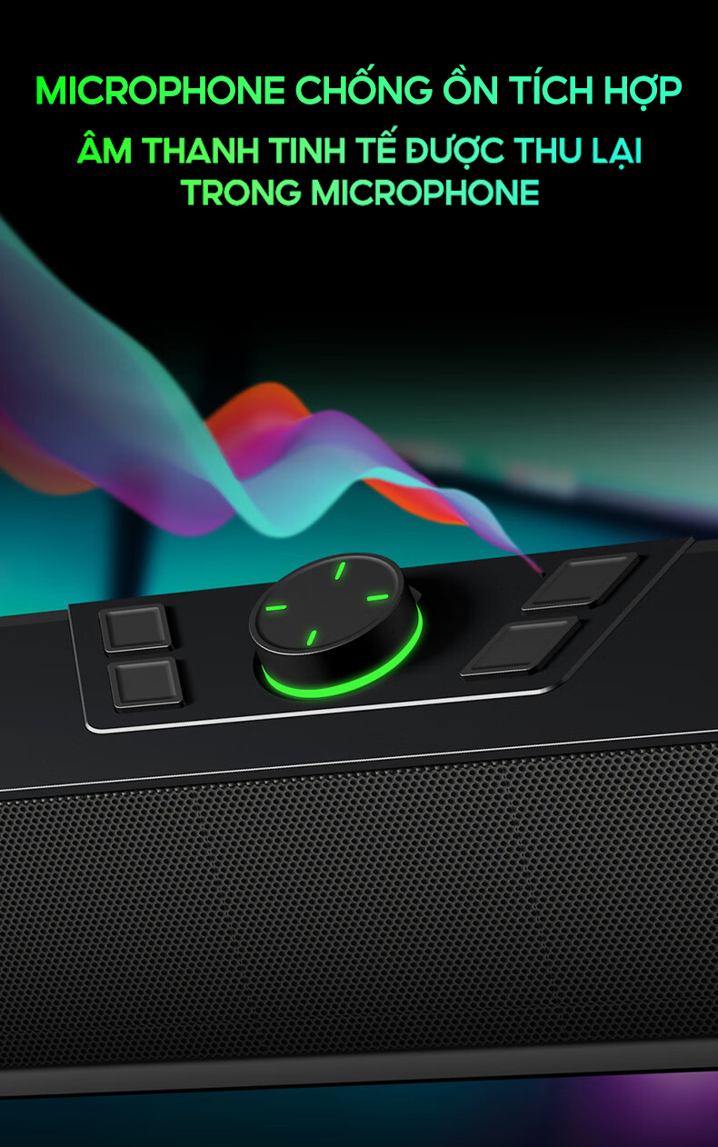 - Đặc biệt, loa có đèn nền màu sắc tùy chỉnh, tạo hiệu ứng ánh sáng đẹp mắt, kết hợp cùng microphone chống ồn giúp giao tiếp trong game hoặc hội thoại rõ ràng và không bị nhiễu.
